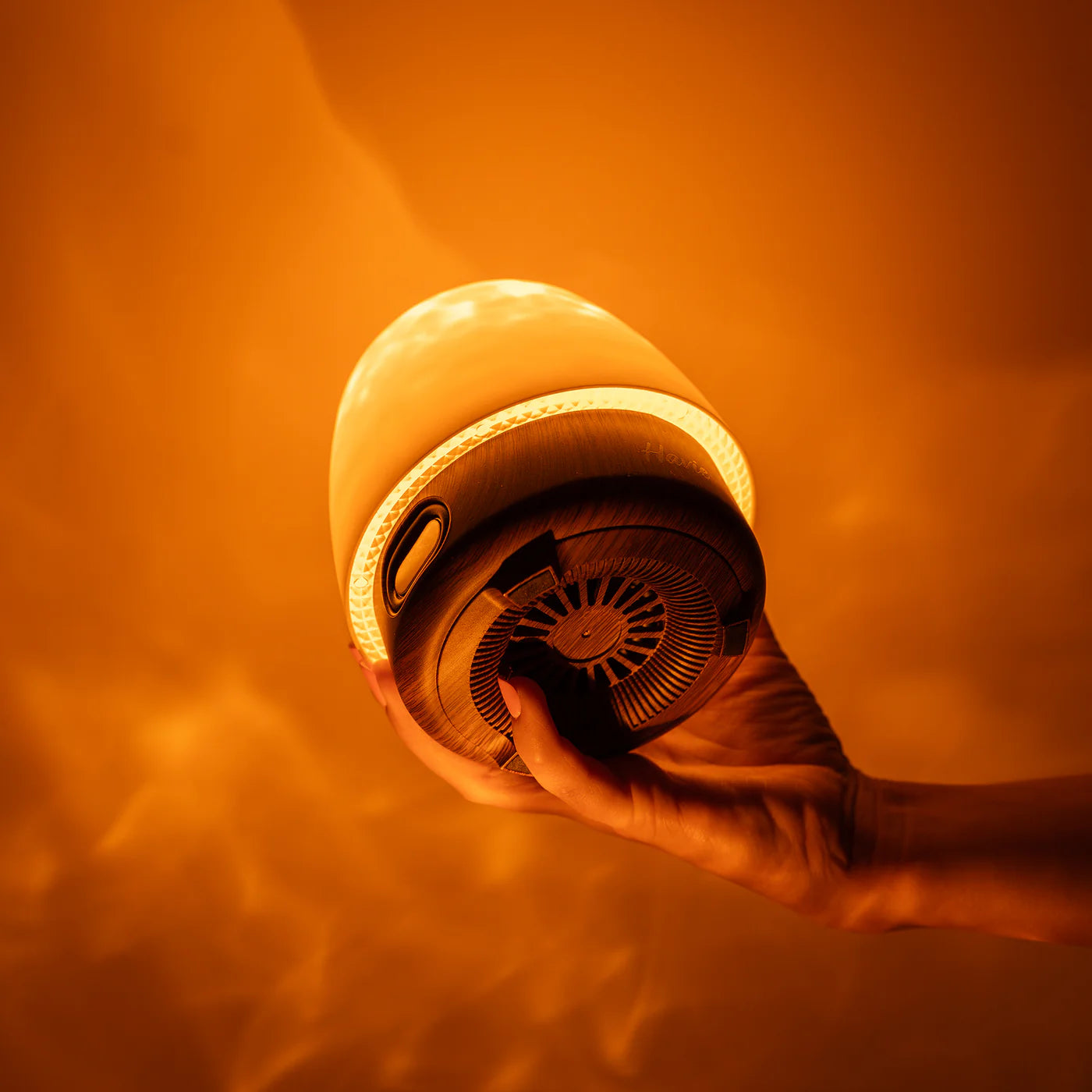 The lamp’s brightness is fully adjustable, so you can go from completely dark to a strong, vivid glow depending on your needs. For sound, think of it as going from a very soft background hum up to a level comparable to loud music in a room, with volume you can fine‑tune to stay comfortable.